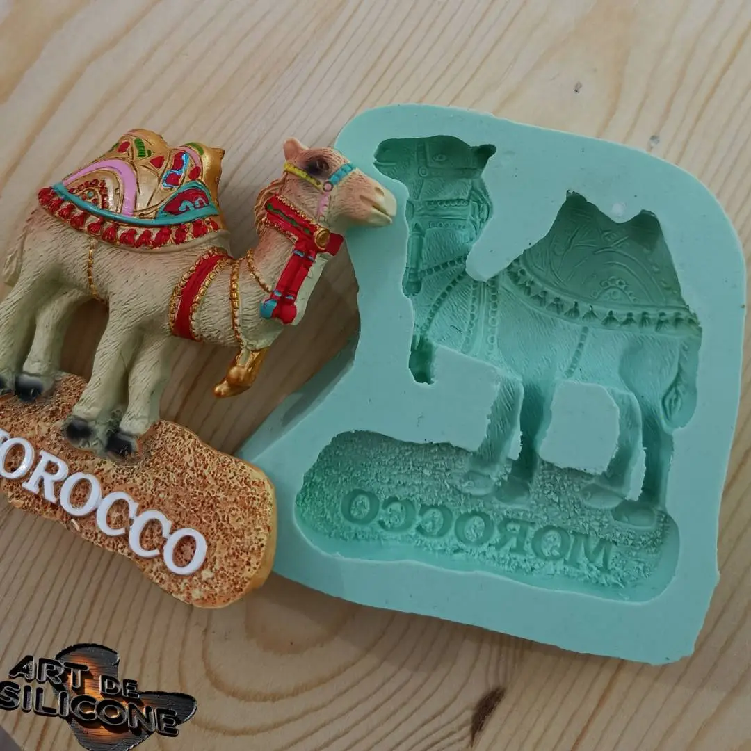 هذا قالب سيليكون بشكل جمل مسطح مع زخرفة وكلمة “Morocco” أسفل القالب هو خيار مثالي للحرفيين وصناع الديكور ومحبي الأعمال اليدوية ذات الطابع المغربي.
